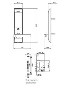 – Tiêu chuẩn lắp đặt: Độ dày cửa: 38 – 90 mm; Độ dày đố cửa: 120 mm